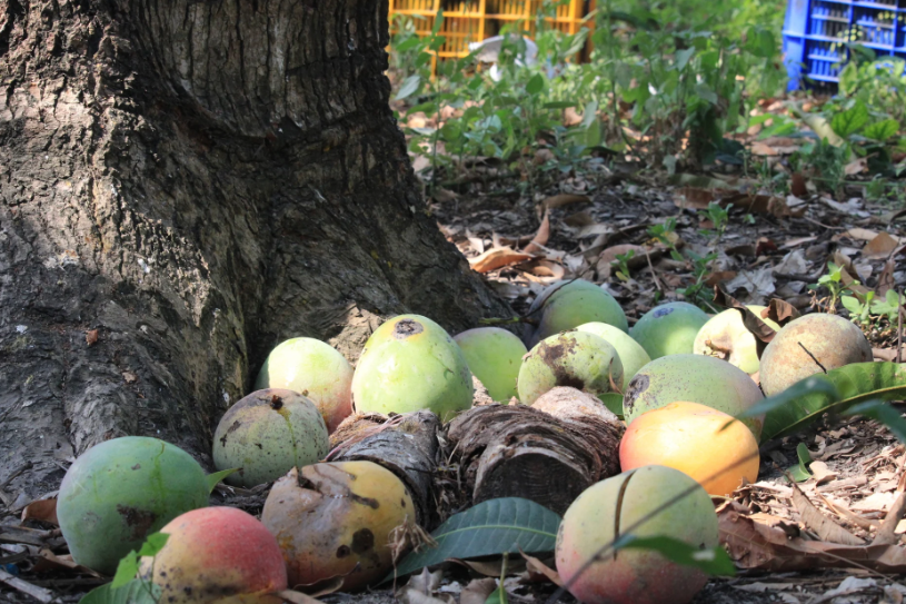 Những quả xoài Úc ở huyện Cam Lâm, Khánh Hòa không có thương lái đến mua để lâu rồi rụng dần. Ảnh: Công Tâm