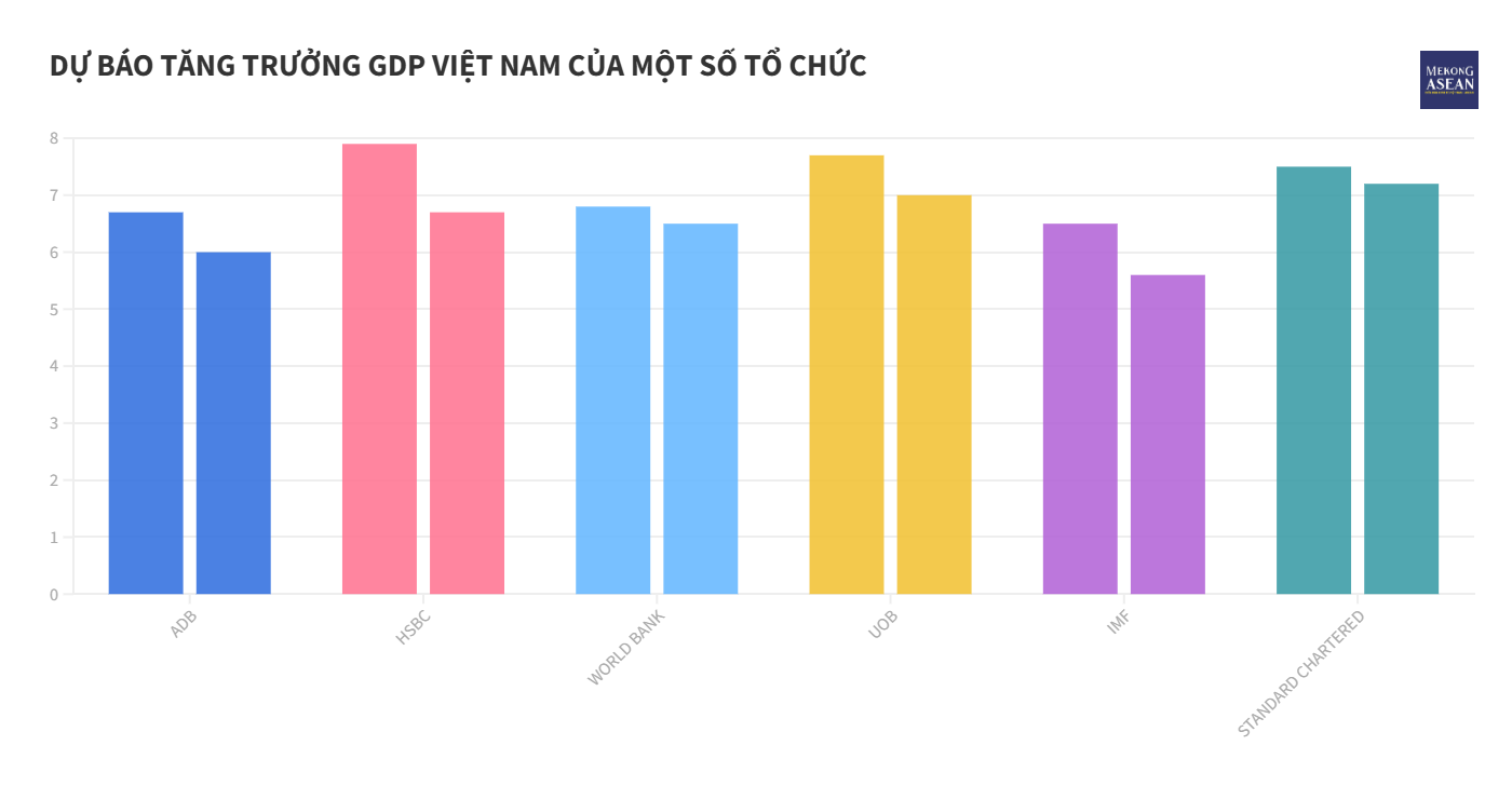 Chia sẻ với Mekong ASEAN, TS. Cấn Văn Lực, Chuyên gia Kinh tế trưởng BIDV, Ủy viên Hội đồng Tư vấn Chính sách của Thủ tướng Chính phủ cho biết, Viện Nghiên cứu Kinh tế BIDV đã đưa ra dự báo lạc quan về Việt Nam với mức tăng trưởng GDP năm 2025 là 8% và bứt phá lên mức 9 - 10% vào năm 2026, miễn là không có thiên tai bất thường.