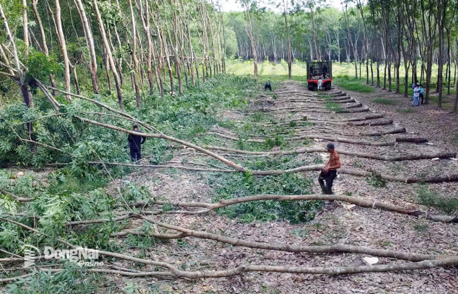 Thanh lý cây cao su để giải phóng mặt bằng thực hiện dự án. Ảnh minh họa: CTV