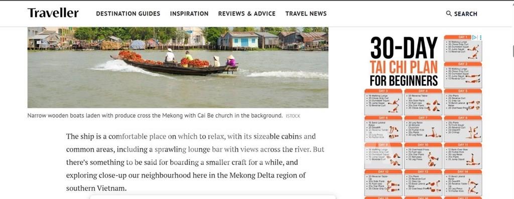 “The Sydney Morning Herald” của Australia đăng bài viết “The Spirit of Vietnam bursts into life a long the Mekong (Hồn Việt lan tỏa dọc sông Mekong) của nhà văn chuyên về du lịch Tim Richards.