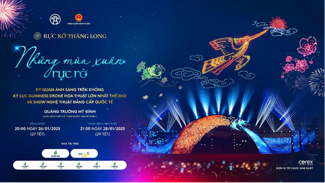 Sự kiện nghệ thuật "Rực rỡ Thăng Long" năm nay sẽ diễn ra vào tối ngày 28/1/2025 (tức đêm giao thừa Ất Tỵ) tại khu vực quảng trường Mỹ Đình - Sân vận động Quốc gia Mỹ Đình, Hà Nội. Trước đó, đêm tổng duyệt chương trình trình diễn drone với chất lượng tương đương phần trình diễn chính thức sẽ được tổ chức vào tối ngày 26/1/2025 (tức ngày 27 tháng Chạp âm lịch). Đây sẽ là cơ hội để người dân Hà Nội và du khách chiêm ngưỡng trước một phần của màn trình diễn đặc sắc này, đồng thời tạo điều kiện thuận lợi cho những ai không thể tham gia sự kiện chính thức.