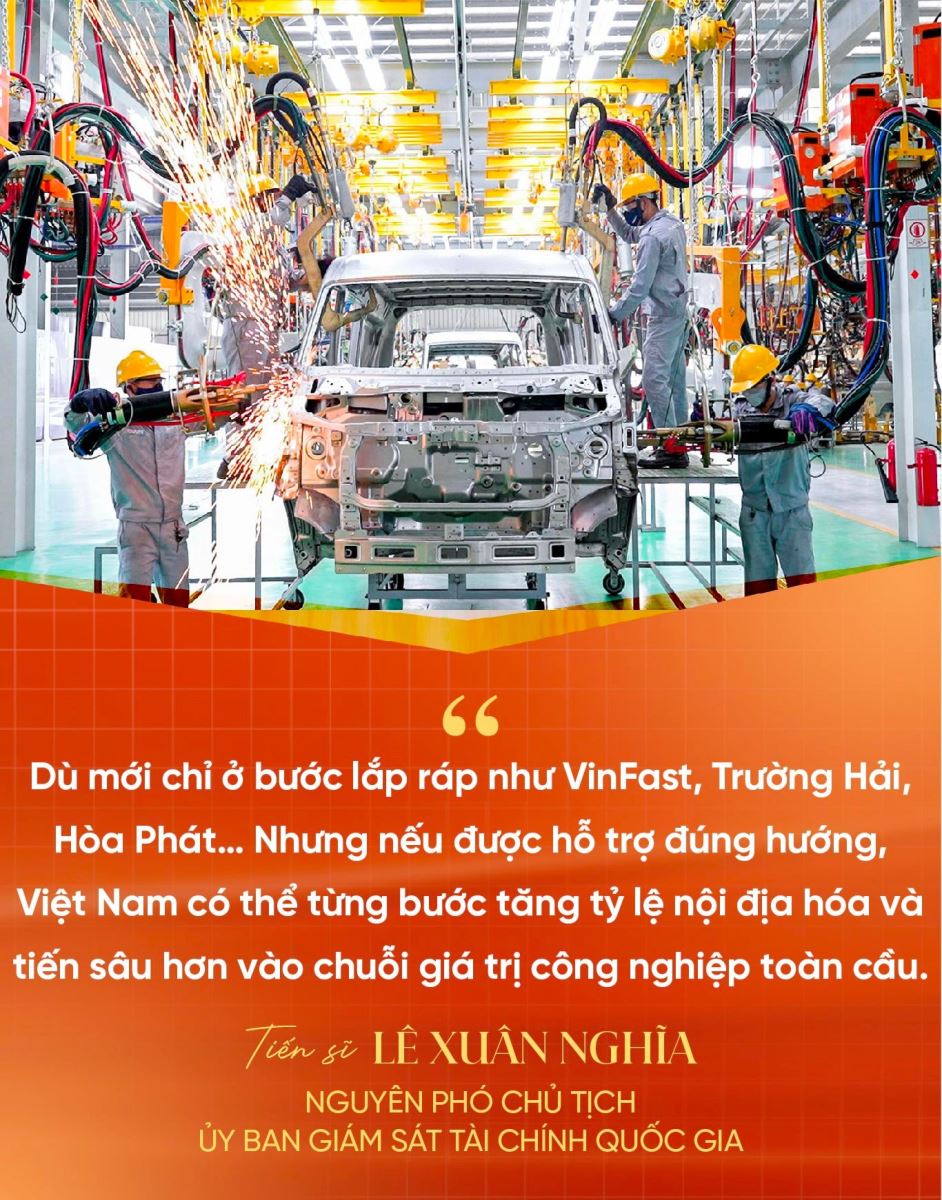 Dẫu vậy, vẫn có một số doanh nghiệp tiên phong dấn thân vào công nghiệp, dù mới chỉ ở bước lắp ráp như VinFast, Trường Hải, Hòa Phát… Nhưng nếu được hỗ trợ đúng hướng, Việt Nam có thể từng bước tăng tỷ lệ nội địa hóa và tiến sâu hơn vào chuỗi giá trị công nghiệp toàn cầu.