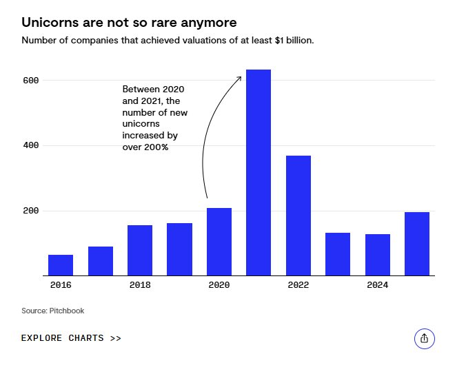 Chỉ riêng năm 2021, thị trường đã chứng kiến một sự kiện vô tiền khoáng hậu: hơn 630 kỳ lân mới được khai sinh. Tức là trung bình mỗi ngày, thế giới đón nhận gần hai startup tỷ USD. Con số này cho thấy định giá một tỷ USD đã mất đi vẻ lấp lánh vốn có, trở thành một cột mốc thông thường trong một thị trường thừa tiền nhưng thiếu sự sàng lọc.
