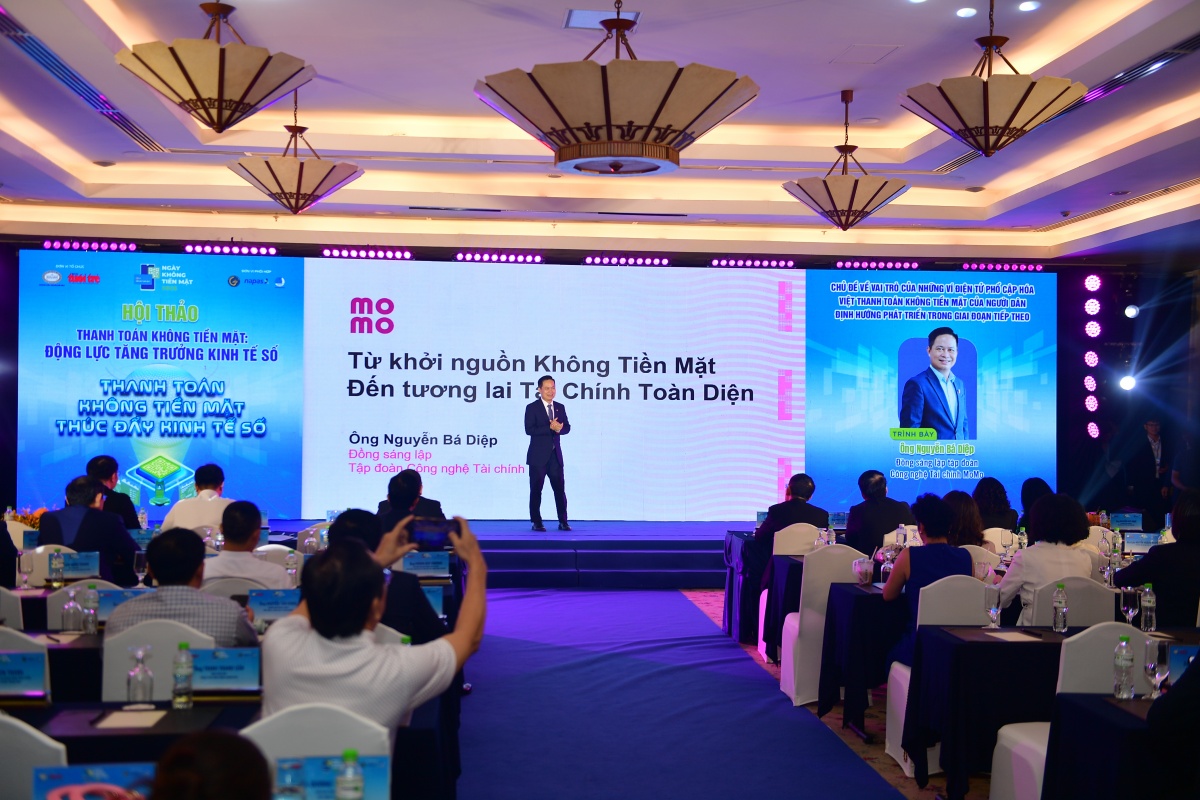 Ông Nguyễn Bá Diệp, đồng sáng lập Tập đoàn công nghệ tài chính MoMo cho biết tại Hội thảo "Thanh toán không tiền mặt: Động lực tăng trưởng kinh tế số" diễn ra vào ngày 14/6 tại TP. Hồ Chí Minh, hiện nay thanh toán không tiền mặt đã có thể thực hiện bằng rất nhiều phương pháp, trong đó Momo đã tạo ra một hệ sinh thái rất lớn, khách hàng có thể đăng ký các dịch vụ tài chính, có thể mua bán tất cả các sản phẩm, có thể sử dụng dịch vụ ngân hàng.