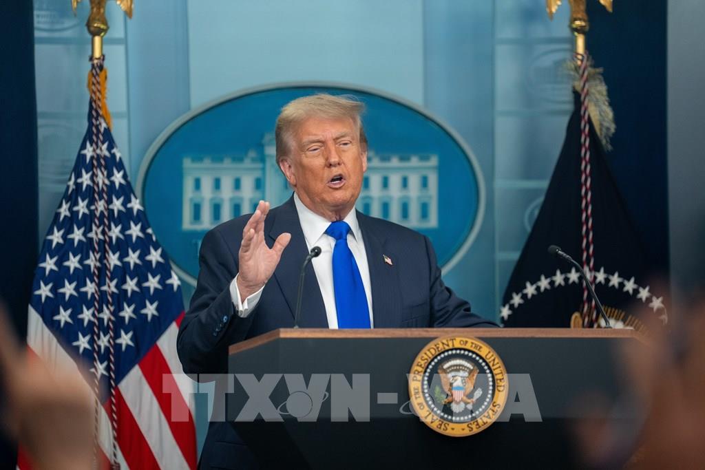 Tổng thống Mỹ Donald Trump trong cuộc họp báo về vấn đề thuế quan, tại Nhà Trắng ngày 27/6/2025. Ảnh: THX/TTXVN