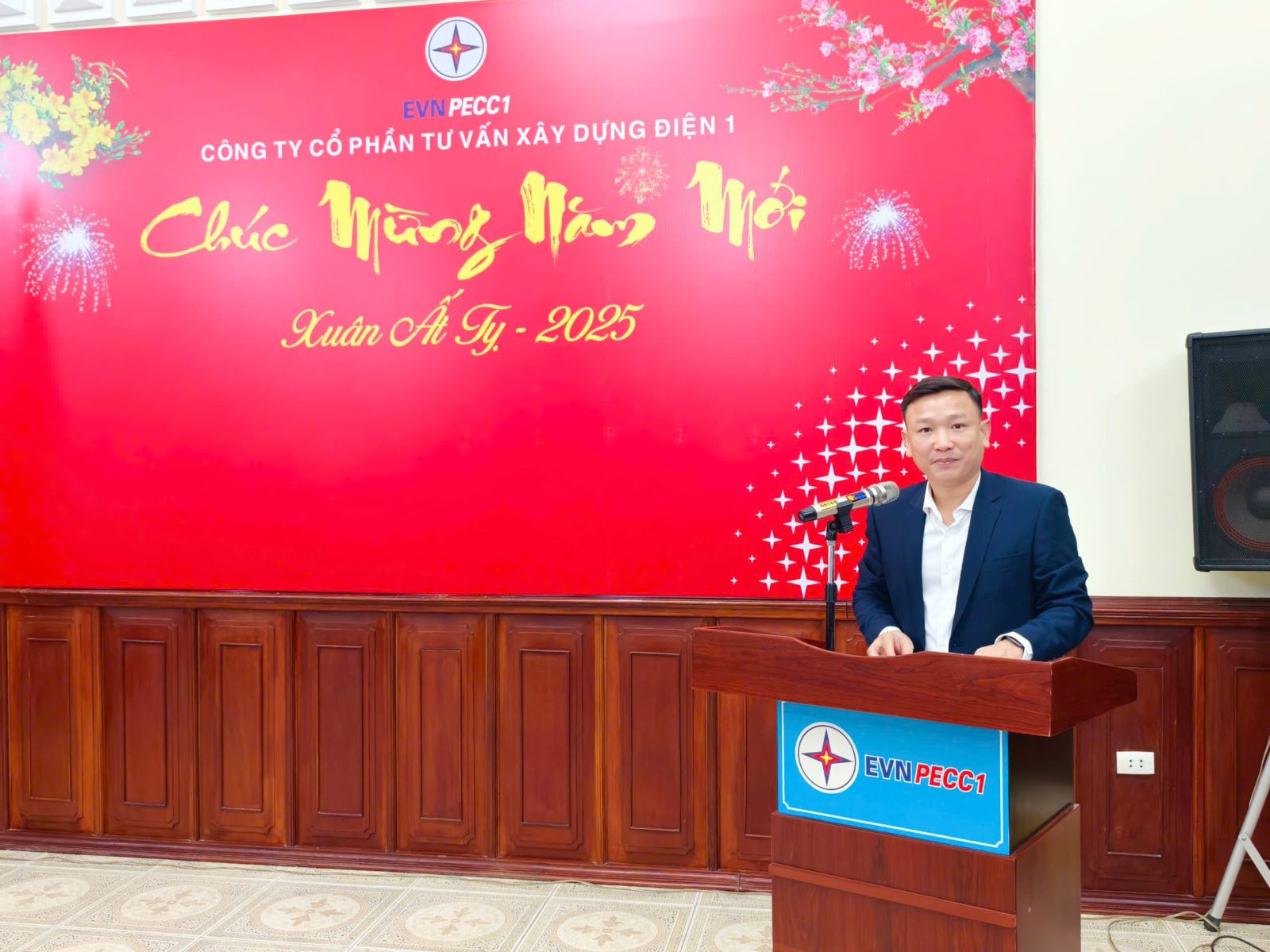 Thay mặt Ban Lãnh đạo Công ty, Tổng Giám đốc Nguyễn Hữu Chỉnh đã phát biểu chia sẻ niềm tự hào về những thành quả PECC1 đạt được trong năm qua. Ông gửi lời cảm ơn chân thành đến toàn thể cán bộ, nhân viên vì sự đóng góp không ngừng nghỉ, đồng thời bày tỏ niềm tin vào sự bứt phá mạnh mẽ của PECC1 trong năm 2025.