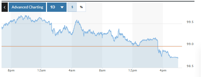 Biểu đồ biến động Chỉ số DXY trong 24 giờ qua. Ảnh: Market watch