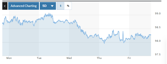Chỉ số USD Index (DXY), đo lường biến động đồng bạc xanh với 6 đồng tiền chủ chốt hiện ở mức 98,27.