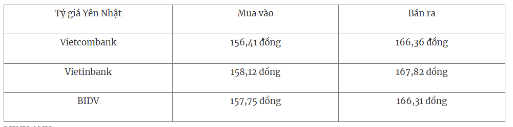 * Tỷ giá yên Nhật tại Sở giao dịch Ngân hàng Nhà nước mua vào - bán ra giảm nhẹ, hiện ở mức: 148 đồng – 164 đồng.