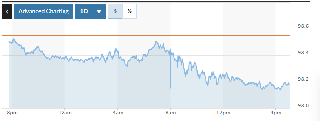 Biểu đồ biến động Chỉ số DXY trong 24 giờ qua. Ảnh: Marketwatch