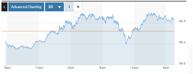 Biểu đồ biến động Chỉ số DXY trong 24 giờ qua. Ảnh: Marketwatch