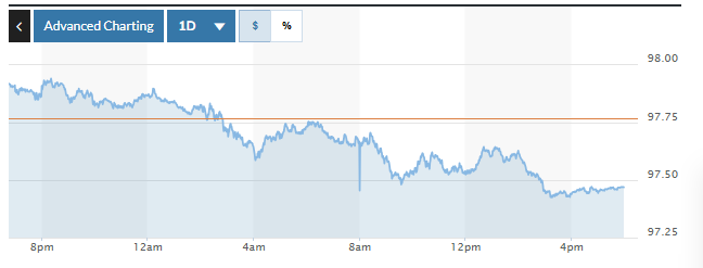 Biểu đồ biến động Chỉ số DXY trong 24 giờ qua. Ảnh: Marketwatch