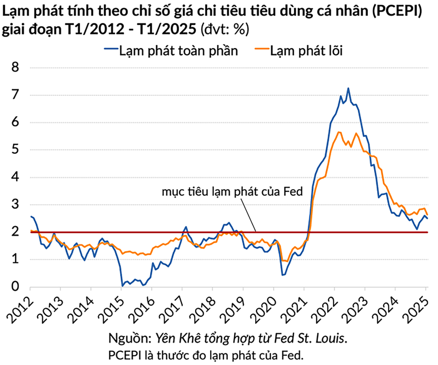 Các nhà kinh tế tại Morgan Stanley dự báo lạm phát tại Hoa Kỳ trong năm 2025 sẽ tăng 2,5%. Trong khi đó, cuộc khảo sát của FED chi nhánh New York đối với các nhà sản xuất và công ty dịch vụ cho thấy lạm phát của Hoa Kỳ trong năm nay và năm sau sẽ lần lượt ở mức 3,5% và 4%.