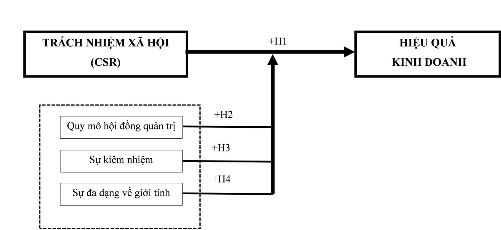 HĐQT đóng một vai trò quan trọng trong việc thiết lập định hướng công ty của họ trong các hoạt động của công ty. Các hoạt động này tạo ra mối quan hệ chặt chẽ giữa CSR và HQKD. Do đó, mối quan hệ giữa các công ty và các bên liên quan của họ, đặc biệt là HĐQT ở Việt Nam, cần được quan tâm đến cách thức không phù hợp để tăng giá trị của công ty và thiết lập chiến lược bền vững. Có thể thấy, đã có nhiều thực nghiệm chứng minh rằng, vai trò quản trị công ty tác động đến CSR và HQKD. Tuy nhiên, nghiên cứu của Việt Nam tập trung vào CSR hoặc CSR đối với HQKD, nhưng vẫn còn thiếu vai trò của quản trị công ty, đặc biệt là các đặc điểm của HĐQT. Mặc dù vậy, chỉ có một số nghiên cứu Việt Nam nhấn mạnh đến các đặc điểm của HĐQT, như: số lượng thành viên HĐQT, sự kiêm nhiệm và đa dạng giới, trong khi các nhà nghiên cứu quốc tế tìm hiểu thêm nhiều đặc điểm của thành viên trong HĐQT để có cái nhìn chung về vai trò quản trị công ty vào mối quan hệ giữa CSR và HQKD. Hơn nữa, hầu hết các nghiên cứu ở Việt Nam đều sử dụng dữ liệu sơ cấp như khảo sát hoặc phỏng vấn. Trong trường hợp, một số nghiên cứu sử dụng dữ liệu thứ cấp đã được thu thập trong một năm, do đó không có thử nghiệm liên tục. Nhóm tác giả vẫn chưa tìm thấy bất kỳ nghiên cứu nào tập trung vào vai trò đặc điểm của quản trị công ty điều tiết đến tác động của CSR đến hiệu quả tài chính trong giai đoạn 2016-2020 trong ngành sản xuất niêm yết. Do đó, nhóm tác giả dựa trên 2 lý thuyết gồm lý thuyết người đại diện và lý thuyết phụ thuộc nguồn lực để nhấn mạnh đặc điểm HĐQT với vai trò điều tiết đến tác động của CSR đến Hiệu quả hoạt động kinh doanh.