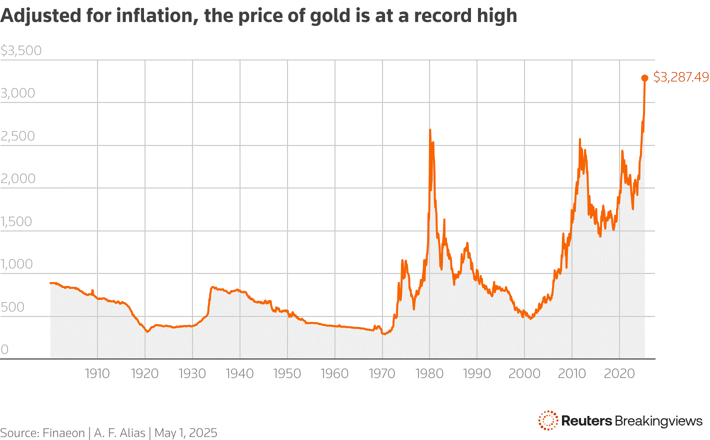 Giá vàng (điều chỉnh theo lạm phát) đang cao kỷ lục lịch sử.