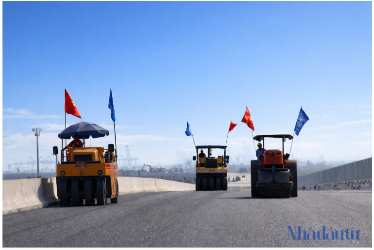 Công nhân đang thảm nhựa phần cầu cạn, đoạn qua TP. Thủ Đức cũ hồi đầu tháng 1, thuộc dự án đường Vành đai 3. Ảnh: Vũ Lê