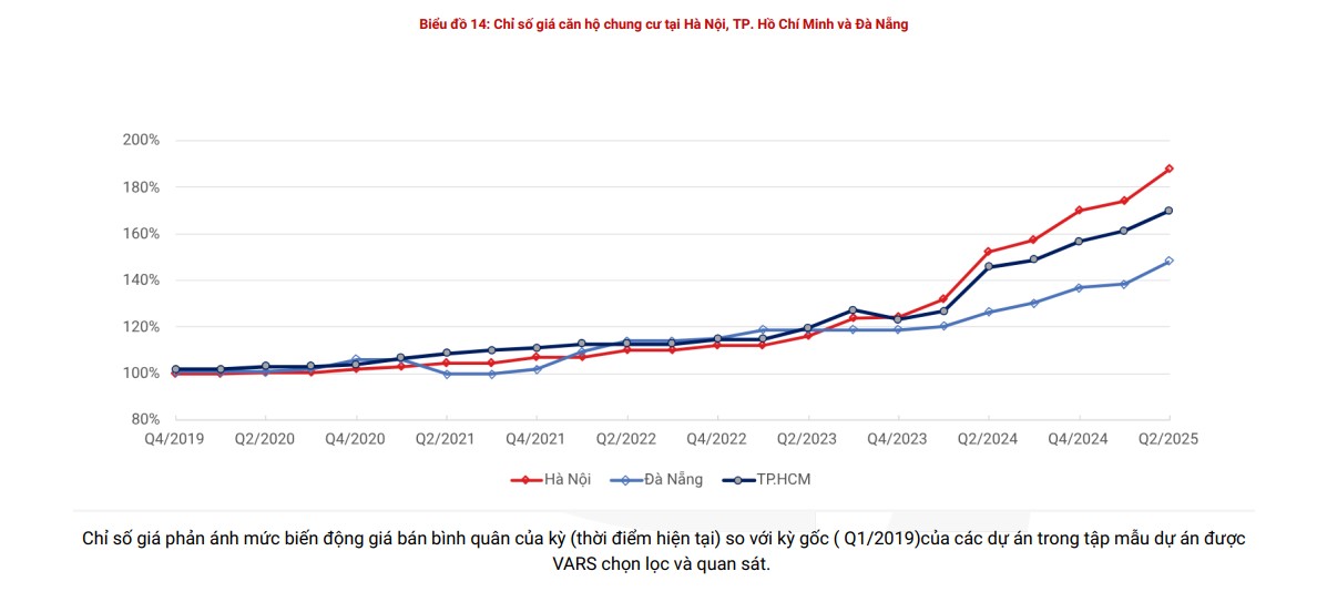 Chỉ số giá căn hộ chung cư tại Hà Nội, TP HCM, Đà Nẵng. Ảnh: VARS.