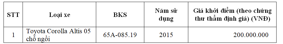 Tổng Công ty Cổ phần Bảo hiểm Ngân hàng TMCP Công thương Việt Nam (VBI) tổ chức bán thanh lý xe ô tô từ ngày 6-10/1 và thông báo đến các cá nhân/tổ chức trong và ngoài ngân hàng có nhu cầu mua tài sản thanh lý.
