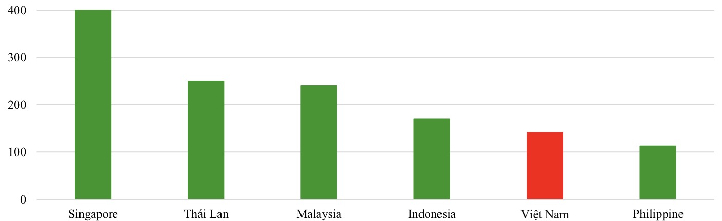 Giá thuê đất khu công nghiệp tại một số quốc gia trong khu vực (USD/m2/chu kỳ thuê). (Nguồn: CBRE, VCBS)