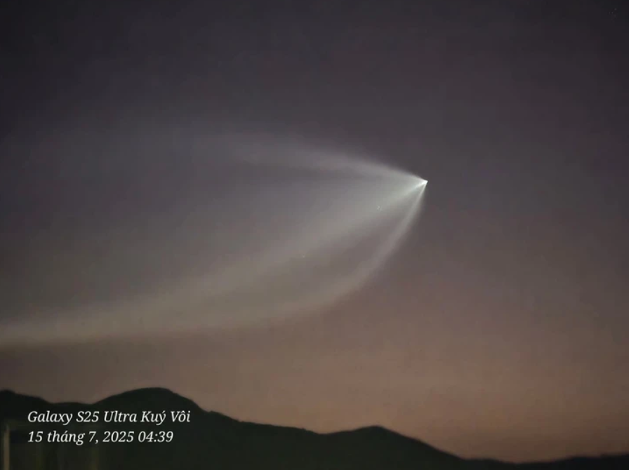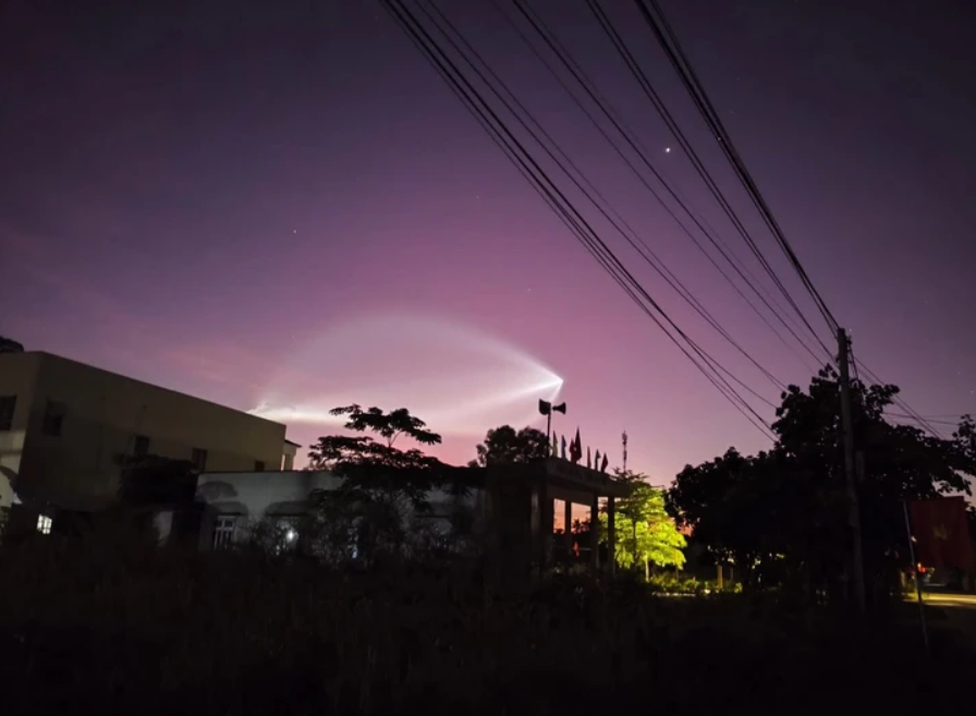 Chuyên gia thời tiết Huy Nguyễn cũng cho biết hình ảnh được quay và chụp tại khu vực bầu trời phía đông miền Trung vào khoảng 4h40 sáng nay, là hình ảnh tên lửa đẩy Trường Chinh 7 (Long March 7) đang phóng tàu vũ trụ Thiên Châu 9 (Tianchou 9) của Trung Quốc vào không gian.