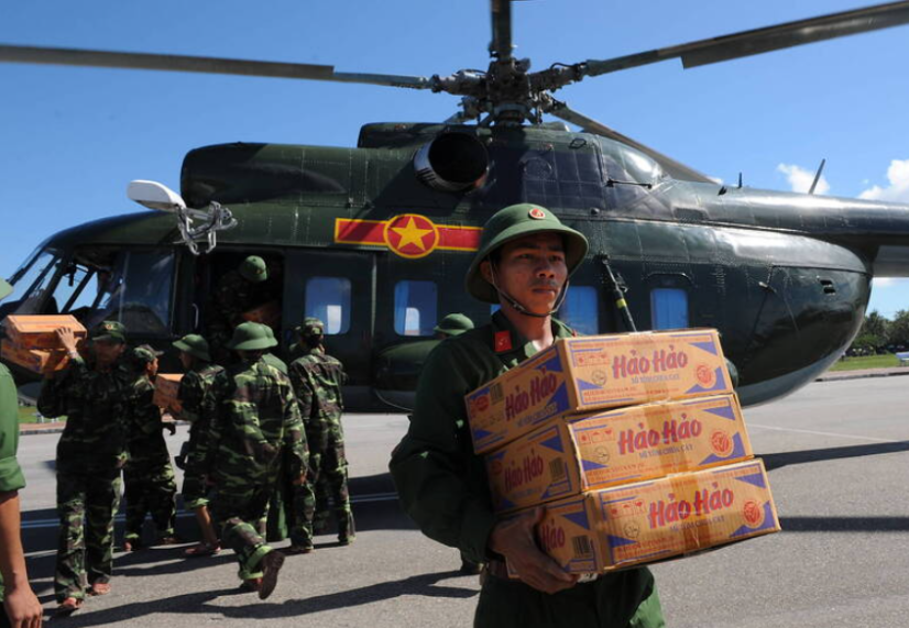 Hảo Hảo là một trong những sản phẩm mì ăn liền phổ biến nhất tại Việt Nam. Hình ảnh chụp quân đội Việt Nam vận chuyển mì ăn liền Hảo Hảo làm hàng cứu trợ thiên tai. (AFP)
