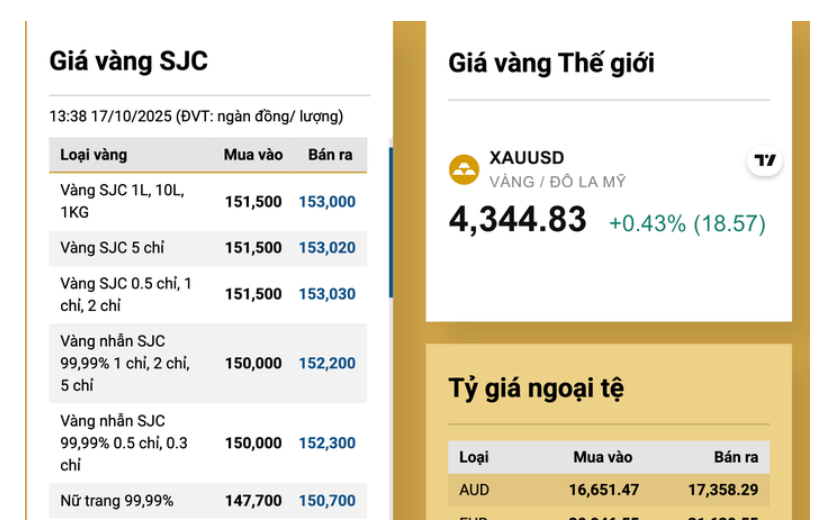 Giá vàng miếng SJC lập đỉnh mới vào chiều 17-10