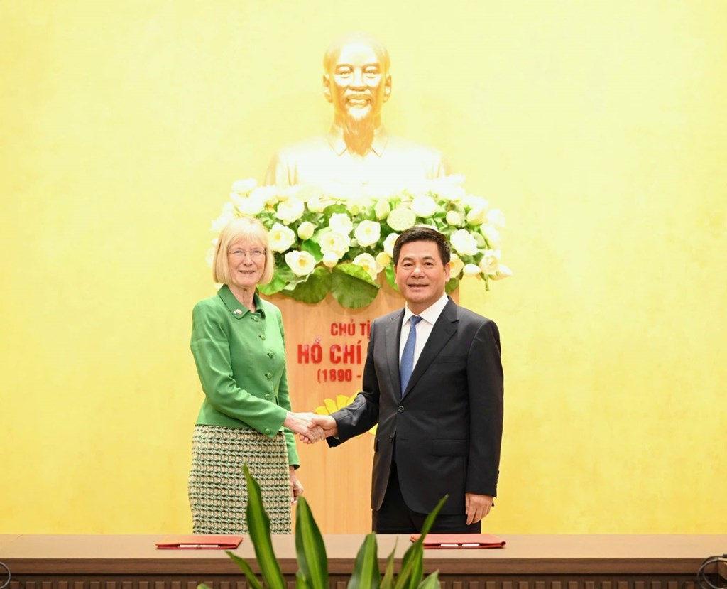 Bộ trưởng Nguyễn Hồng Diên và Đại sứ Gillian Bird, đã cùng chứng kiến Lễ trao đổi Bản ghi nhớ về Hợp tác thúc đẩy phát triển thị trường điện cạnh tranh giữa Cục Điện lực và Đại sứ quán Australia.Ảnh: Bộ Công Thương