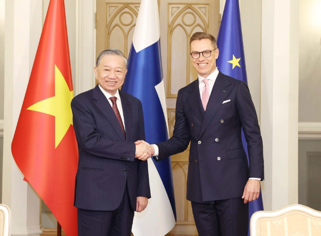 Tổng Bí thư Tô Lâm nhấn mạnh Việt Nam luôn hoan nghênh và tạo điều kiện thuận lợi cho các doanh nghiệp Phần Lan đầu tư vào Việt Nam và sẵn sàng cùng Phần Lan làm cầu nối tiếp cận thị trường EU cũng như ASEAN, qua đó thúc đẩy hợp tác Việt Nam - EU, Phần Lan - ASEAN phát triển mạnh mẽ hơn trong thời gian tới.