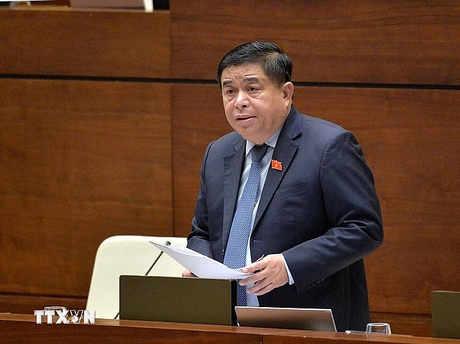 Bộ trưởng Bộ Kế hoạch và Đầu tư Nguyễn Chí Dũng giải trình làm rõ ý kiến của Đại biểu Quốc hội. (Ảnh: Phương Hoa/TTXVN)