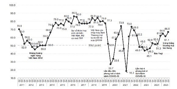Theo đó, Chỉ số BCI quý III/2025 đã tăng lên 66,5 điểm, nhờ nỗ lực đàm phán chủ động của Việt Nam cùng các biện pháp thúc đẩy đầu tư công và cải cách hành chính. Con số này vượt mức ghi nhận trước giai đoạn áp thuế đối ứng từ Hoa Kỳ và đạt đỉnh cao nhất trong 3 năm qua, phản ánh niềm tin lạc quan trở lại đối với triển vọng kinh tế và môi trường kinh doanh tại Việt Nam của các doanh nghiệp châu Âu.
