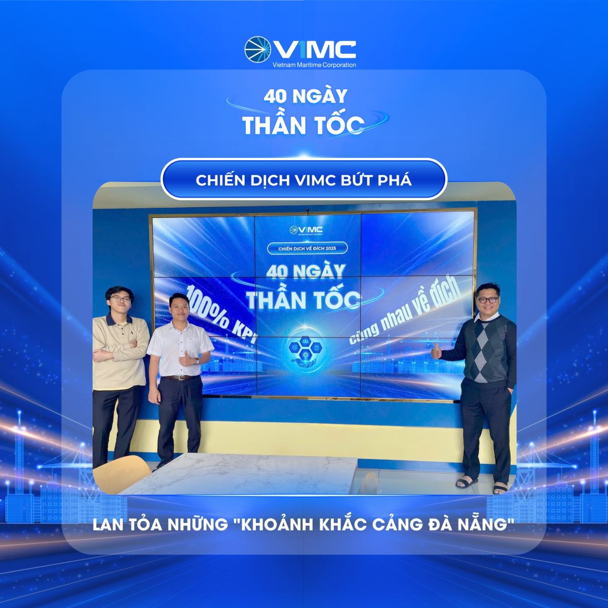 Chiến dịch “VIMC Bứt phá – 40 ngày thần tốc” được ví như hồi còi tàu giục giã, khơi dậy tinh thần quyết tâm của hàng ngàn cán bộ nhân viên trong hệ thống VIMC. Chiến dịch được thiết kế như một hành trình đếm ngược đầy cảm xúc với 5 chặng tuần, tương ứng với 5 giá trị văn hóa cốt lõi. Thông điệp xuyên suốt “Chúng ta cùng làm – Cùng về đích” là lời khẳng định về sức mạnh của sự đoàn kết và sự đồng lòng.