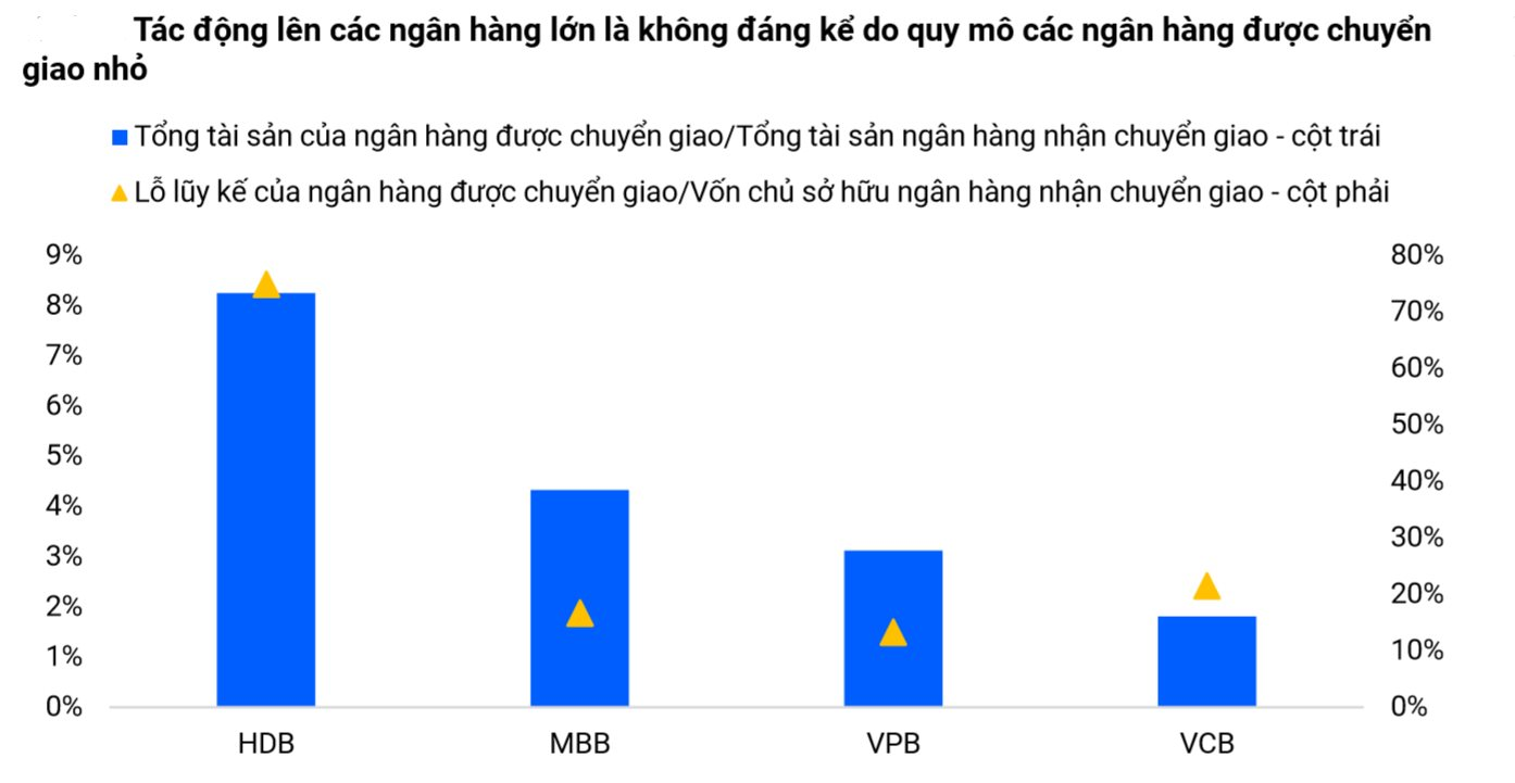 Theo đánh giá của VIS Rating, tác động trực tiếp từ các ngân hàng mới được chuyển giao tới các ngân hàng lớn là không đáng kể do quy mô các ngân hàng được chuyển giao còn nhỏ so với các ngân hàng lớn.