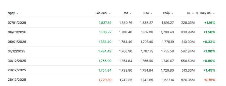 Bước vào năm 2026, VN-Index gây ấn tượng với 2 phiên giao dịch đầu năm mới tăng điểm liên tiếp. Tính tại phiên 6/1, chỉ số VN-Index tiếp tục phá đỉnh lịch sử khi dừng ở mốc 1.816 điểm.
