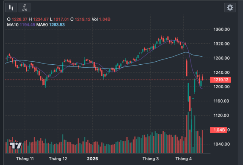 VN-Index rớt về mức thấp nhất vùng 1.073 điểm, trước khi phục hồi trở lại vượt 1.200 điểm trong tháng 4