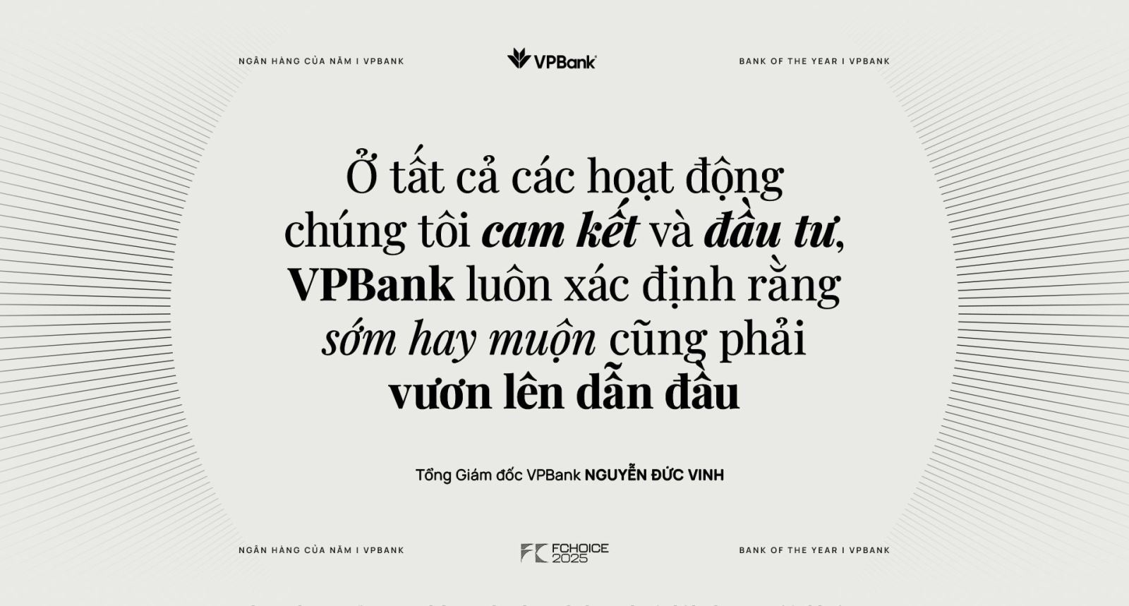 VPBank có thể chưa đứng đầu về mọi chỉ tiêu, nhưng với định hướng chiến lược rõ ràng, tốc độ thực thi cao và sự hậu thuẫn mạnh mẽ của cổ đông, tham vọng dẫn đầu không còn là lời hứa, mà đang trở thành mục tiêu thực tế mà ngân hàng này từng bước tiến tới. Và có lẽ, khi một CEO nhắc tới từ “dẫn đầu” hơn mười lần trong 20 phút, điều đó không phải để thuyết phục thị trường, mà để nhắc lại cho chính mình và đội ngũ rằng: Hành trình VPBank đang đi chỉ có một hướng là tiến lên phía trước, và tiến lên vị trí dẫn đầu.