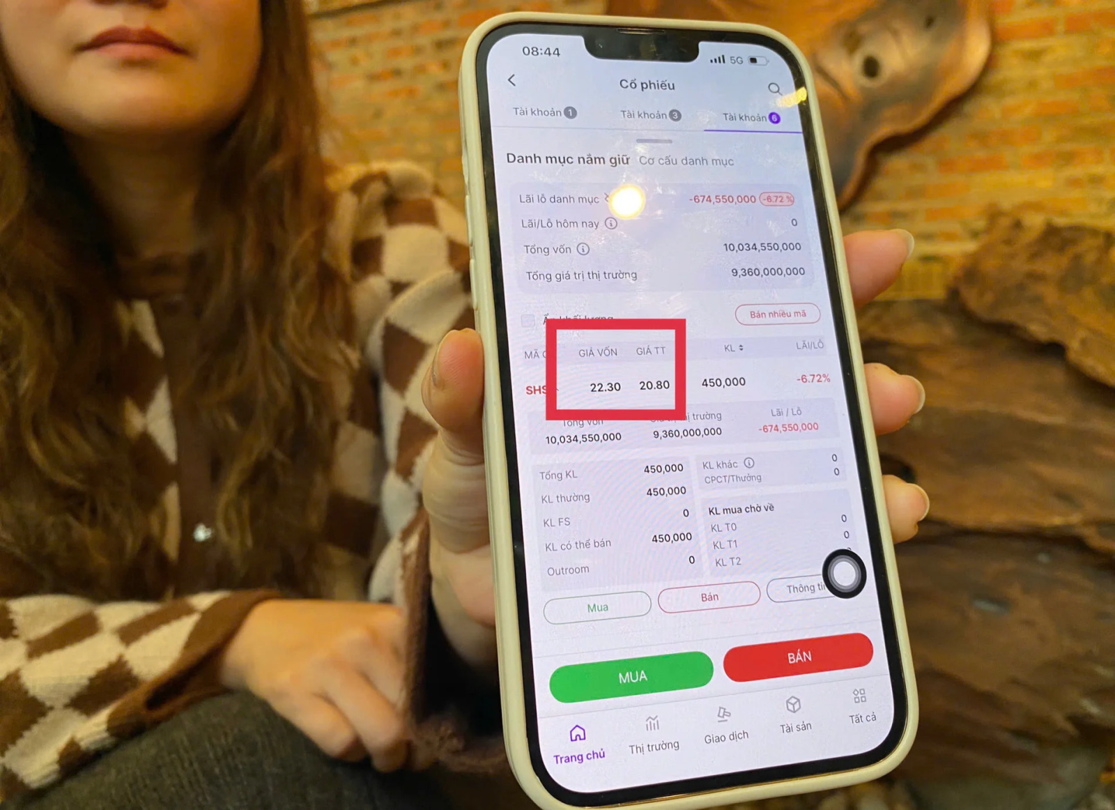 Chị Tố Như lo lắng, mình có dùng đòn bẩy, vay ký quỹ 50% số tiền nên việc trả lãi của bị ảnh hưởng bởi giá vốn cổ phiếu tăng (hiển thị trên ứng dụng VPS Smart One), chị sẽ phải trả lãi nhiều hơn.
