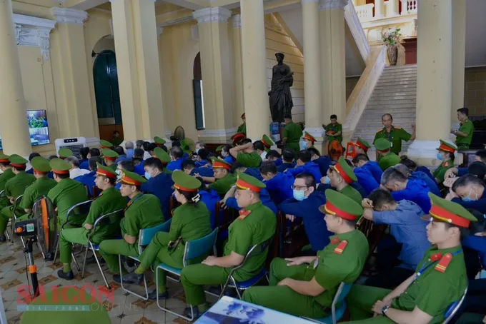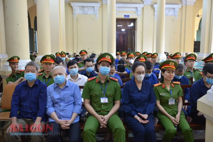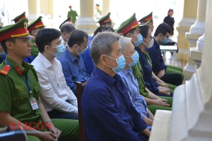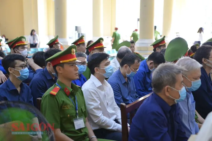 Các bị cáo trong vụ án tại tòa. Ảnh: CAO THĂNG
