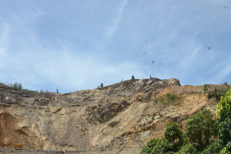Tuyến đường Công ty Thành An Phú Yên đã và đang mở trên lưng núi để khai thác mỏ đá Suối Cối là hạng mục thi công hợp pháp, có sự chồng lấn với mỏ đá Lương Phước của Công ty Huy Thiên Phú vừa trúng đấu giá. Ảnh: Việt Tường.