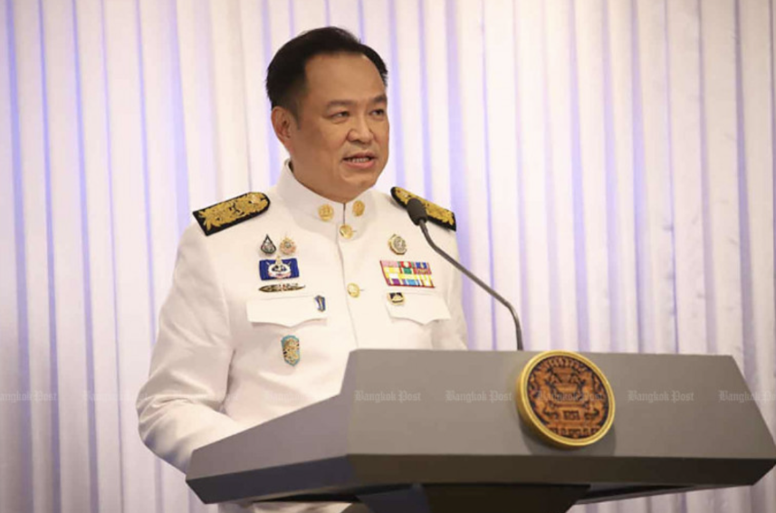 Ông Anutin Charnvirakul phát biểu sau khi được bổ nhiệm làm thủ tướng tại trụ sở Đảng Bhumjaithai hôm 7-9. Ảnh: Bangkok Post