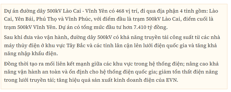 Tập đoàn Điện lực Việt Nam vừa thông tin, gói thầu đầu tiên trong toàn dự án đường dây 500kV Lào Cai - Vĩnh Yên đã "vượt ngàn chông gai" để cán đích.