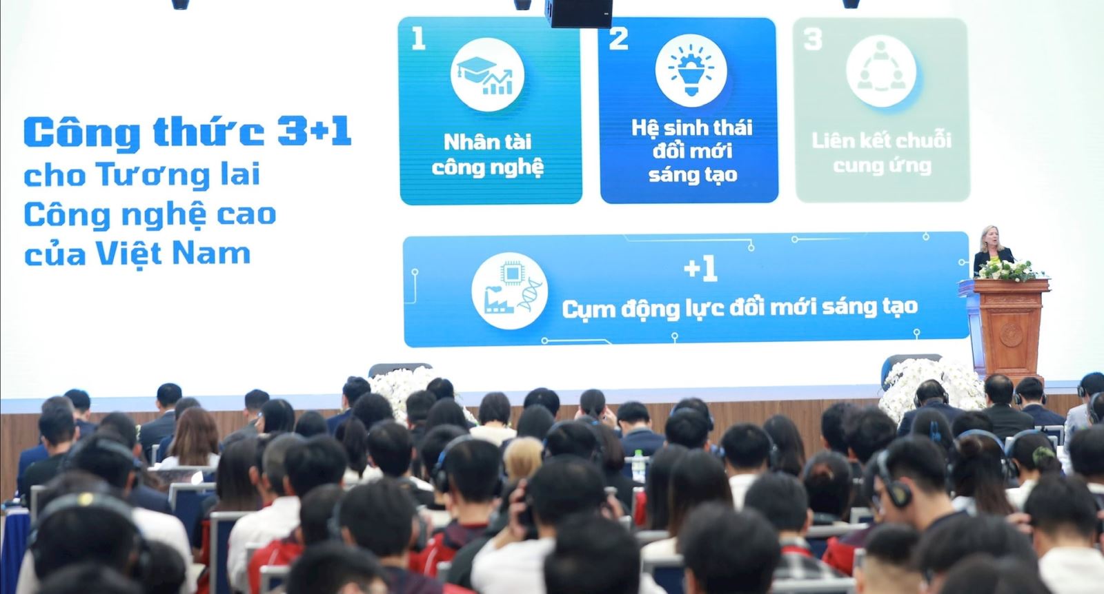 Bà Mariam J. Sherman - Giám đốc WB tại Việt Nam, Campuchia và Lào nhấn mạnh: nhân tài công nghệ và hệ sinh thái đổi mới sáng tạo có vai trò quan trọng cho tương lai công nghệ cao Việt Nam