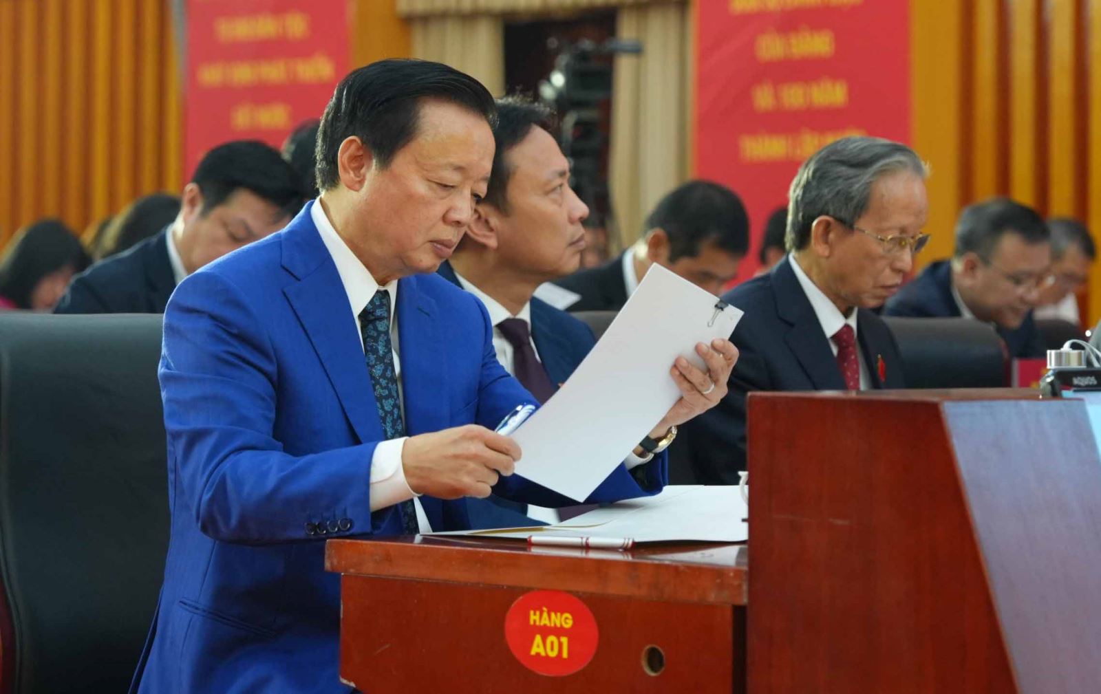 Đồng chí Trần Hồng Hà, Ủy viên Trung ương Đảng, Ủy viên Ban Thường vụ Đảng ủy Chính phủ, Phó Thủ tướng Chính phủ dự và chỉ đạo Đại hội. Ảnh: Đinh Hiệp.