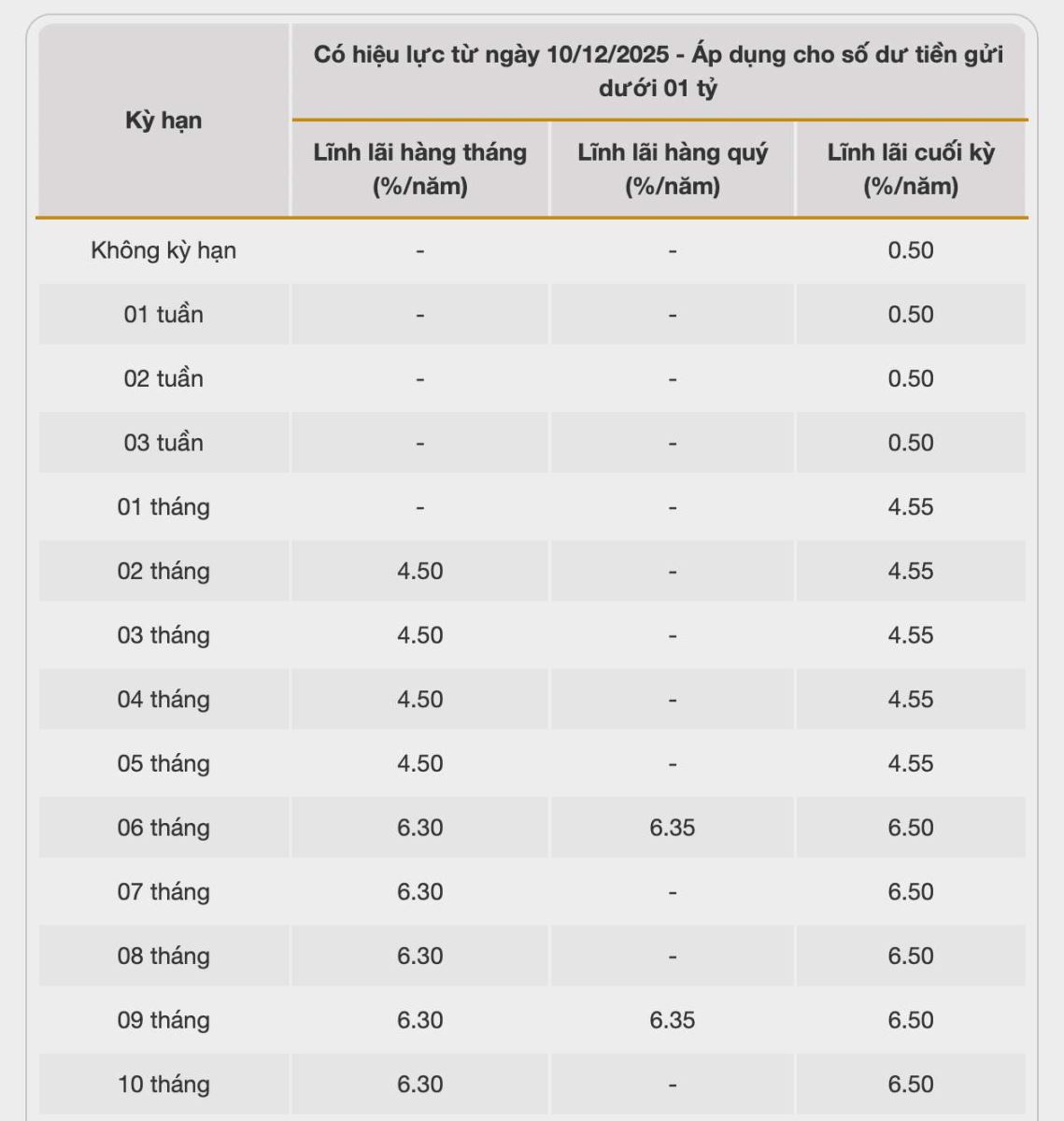 Theo khảo sát của PV Báo Lao Động ngày 27.12.2025, lãi suất tiết kiệm kỳ hạn 13 tháng trong hệ thống ngân hàng niêm yết cao nhất là 9%.