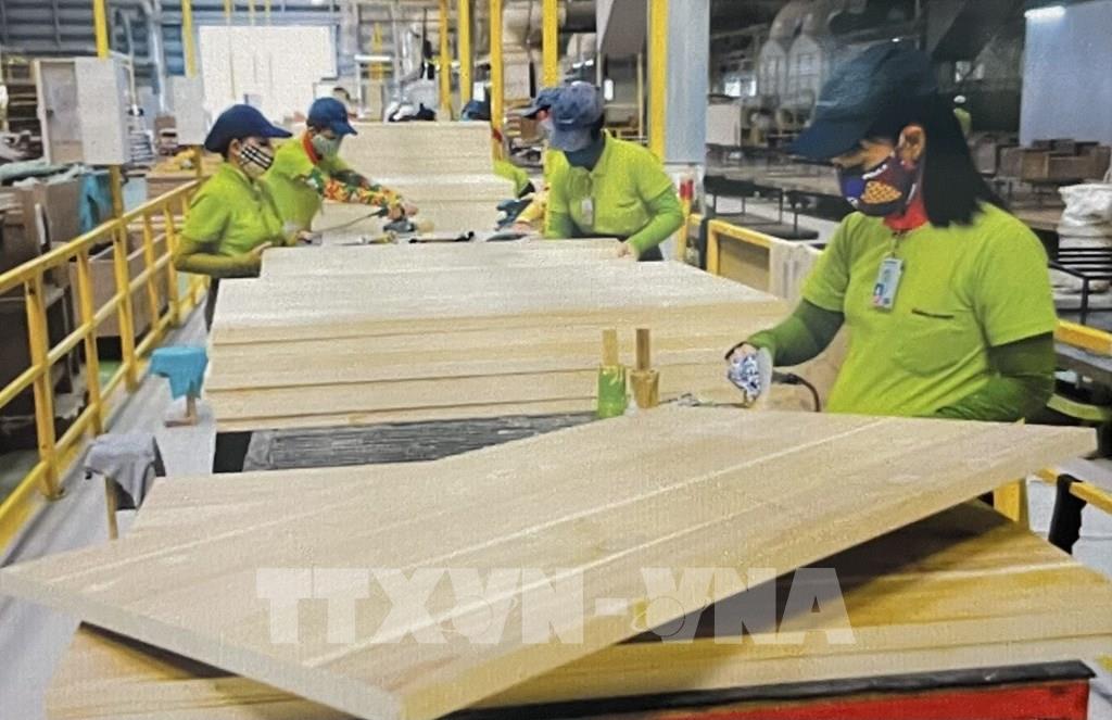 Công nhân nhà máy gỗ chuẩn bị nguồn hàng xuất khẩu. Ảnh: Hồng Nhung - TTXVN