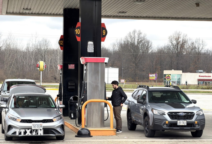 Người dân tiếp nhiên liệu cho xe ôtô tại một trạm xăng ven đường cao tốc ở Mỹ. (Ảnh: Ngọc Quang/TTXVN)